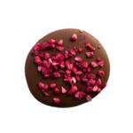 Kremowa mleczna czekolada z kawałkami słodkich, liofilizowanych truskawek.