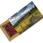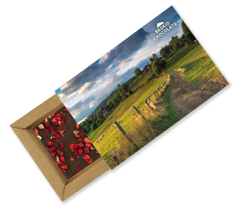 Na opakowaniu – Hala Boracza, jedno z najbardziej malowniczych miejsc w Beskidach. Szerokie widoki, letnie łąki i smak dzieciństwa – zamknięte w każdej tabliczce.