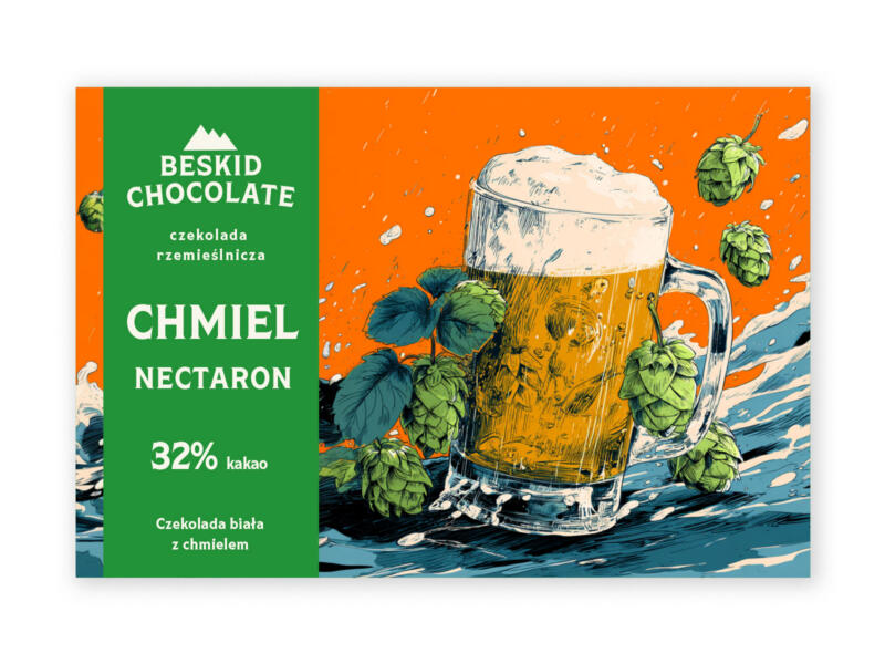 Kremowa biała czekolada z dodatkiem aromatycznego chmielu Nectaron. Soczyste nuty ananasa, brzoskwini i cytrusów tworzą słodko-owocową, zaskakującą kompozycję.