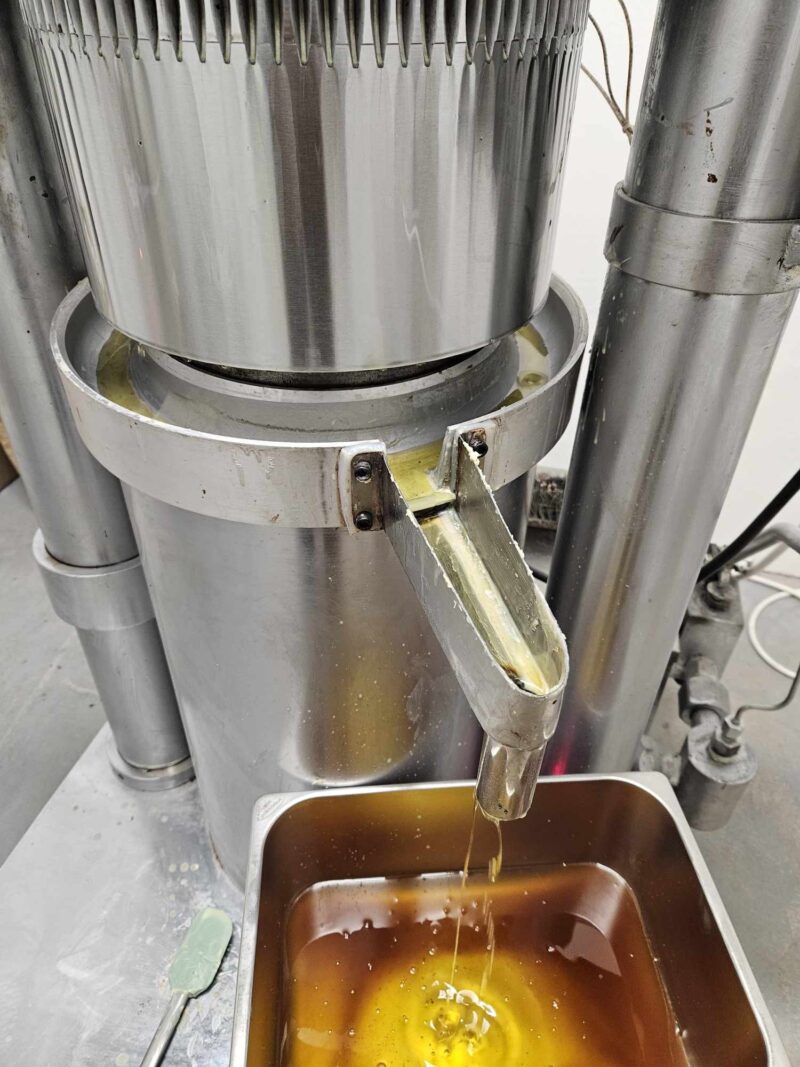 Pod naciskiem 60 Mpa – 600kg/cm2, ściskamy miazgę i przez gęsty materiał przesiąka czysty tłuszcz kakaowy.