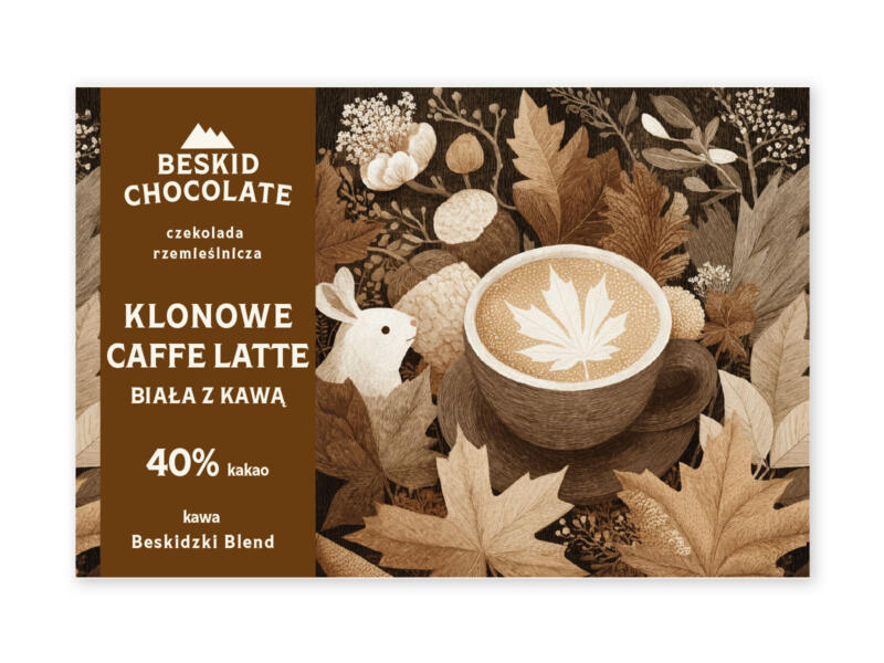Rozsmakuj się w naszej kremowej białej czekoladzie, w której delikatna słodycz spotyka się z aromatyczną nutą kawy. Choć to czekolada biała, jej kolor jest ciemniejszy — naturalnie zabarwia ją kawa. Aż 40% masła kakaowego nadaje jej aksamitną gładkość, a syrop klonowy dopełnia smak nutą klonowego Caffè Latte.