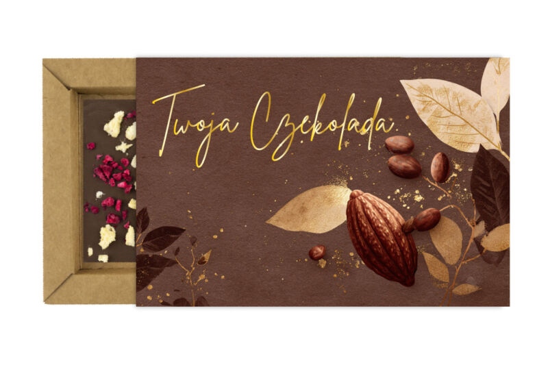 Stwórz wyjątkowy upominek firmowy lub prezent okolicznościowy z własnym projektem! Nasza czekolada łączy delikatną słodycz z owocową świeżością, a eleganckie opakowanie możesz spersonalizować według własnych potrzeb.