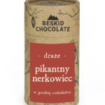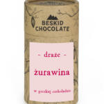 Soczysta żurawina otulona intensywną gorzką czekoladą Beskid Chocolate. Połączenie lekko kwaskowego owocu i głębokiego smaku rzemieślniczej czekolady bean to bar tworzy idealnie zbalansowaną przekąskę. Draże zapakowane są w elegancką kraftową tubę – doskonałą na prezent lub chwilę słodkiej przyjemności.