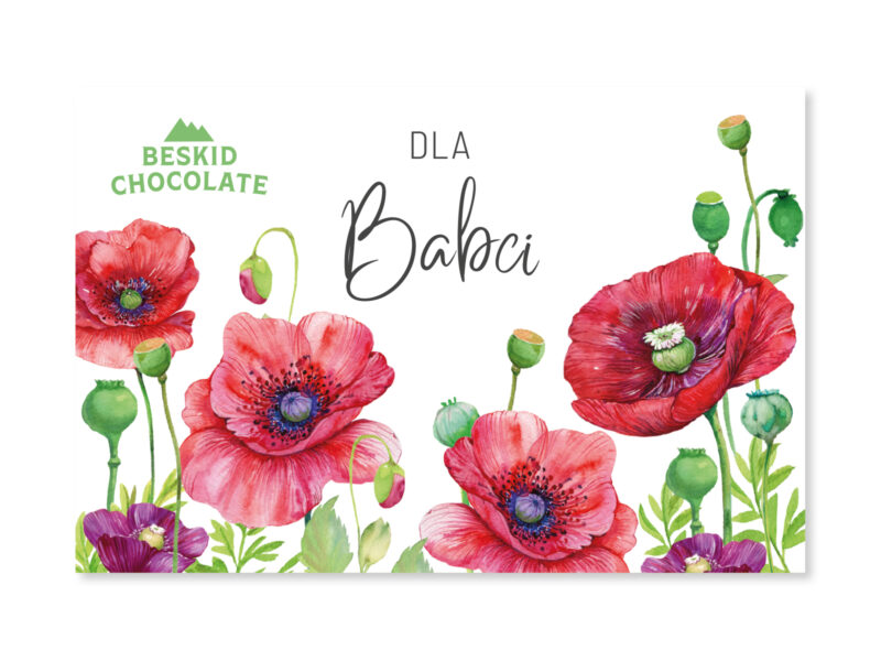 Tabliczka czekolady dla babci ręcznie zdobiona czekolada gorzka w ozdobnej owijce z napisem „Dla Babci”.