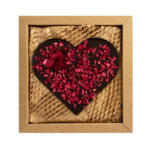 Serce z czekolady ciemnej 72 % z dodatkiem maliny i chili. Czekoladowe serce zapakowane jest w estetyczne pudełko z kartonu typu kraft wypełnione papierem strukturalnym.