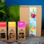 Zestaw podarunkowy HERBATY zapakowany jest w pudełko typu kraft z tektury falistej. Pudełko podkreśla rzemieślniczy charakter naszych produktów. Pudełko wypełnione jest eko – wiórkami, które dodatkowo ozdabiają produkt, ale też zabezpieczają je na czas transportu.