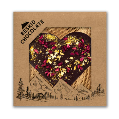 Serce z czekolady ciemnej z granatem i pomarańczą 100g