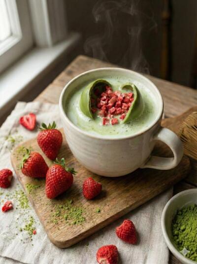 Czekoladowa Bomba Matcha z truskawkami